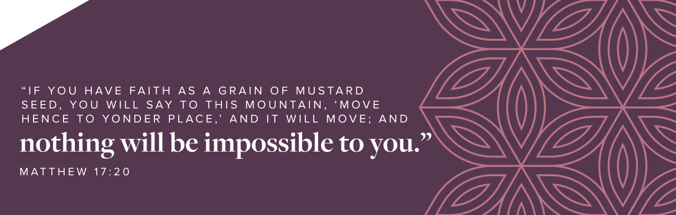 And when they came to the crowd, a man came up to him, and kneeling before him said, “Lord, have mercy on my son, for he is an epileptic and he suffers terribly; for often falls into the fire, and often into the water. And I brought him to your disciples, and they could not heal him.” And Jesus answered, “O faithless and perverse generation, how long am I to be with you? How long am I to bear with you? Bring him here to me.” And Jesus rebuked him, and the boy was cured instantly. Then the disciples came to Jesus privately and said, “Why could we not cast it out?” He said to them, “Because of your little faith. For truly I tell you, if you have faith as the grain of a mustard seed, you will say to this mountain, ‘Move from hence to yonder place,’ and it will move; and nothing will be impossible for you.”